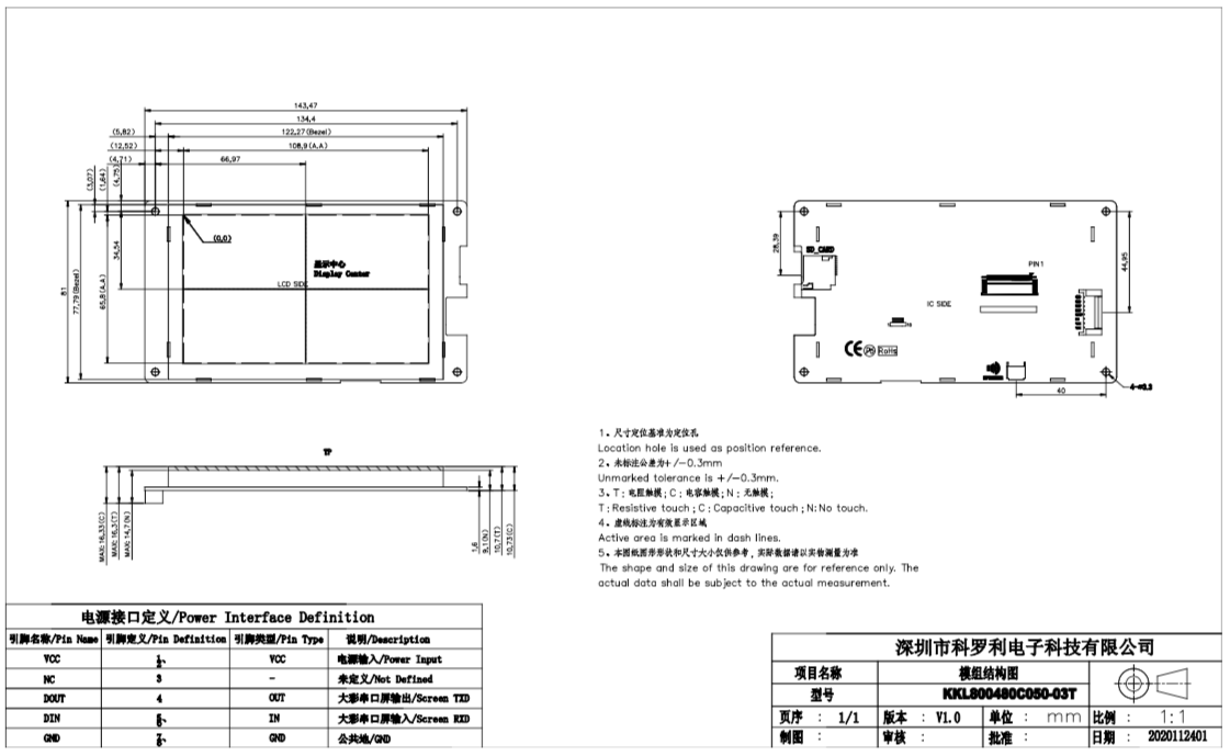 5” Serial Uart TFT Panel |